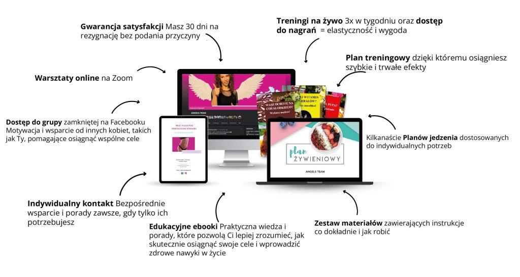 Dołącz do mojego programu FIT TRANSFORMACJA w zamkniętej grupie ANGELS TEAM z treningami dla kobiet w różnym wieku i spełnij swoje marzenia o szczupłej sylwetce! Schudnij minimum 5 kilogramów bez restrykcyjnych diet trenując w domu.